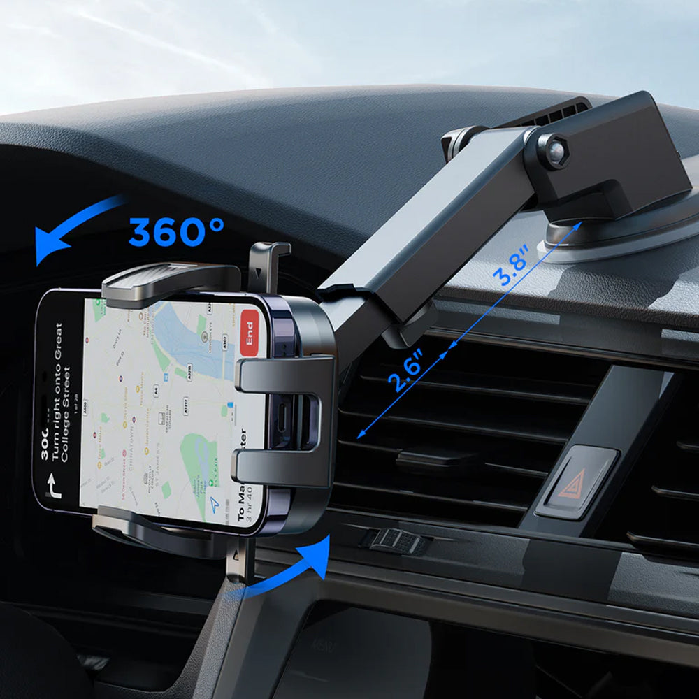 حامل موبايل للسيارة جوي روم للزجاج الامامي دوران كامل 360 درجة JR-OK6 - أسود