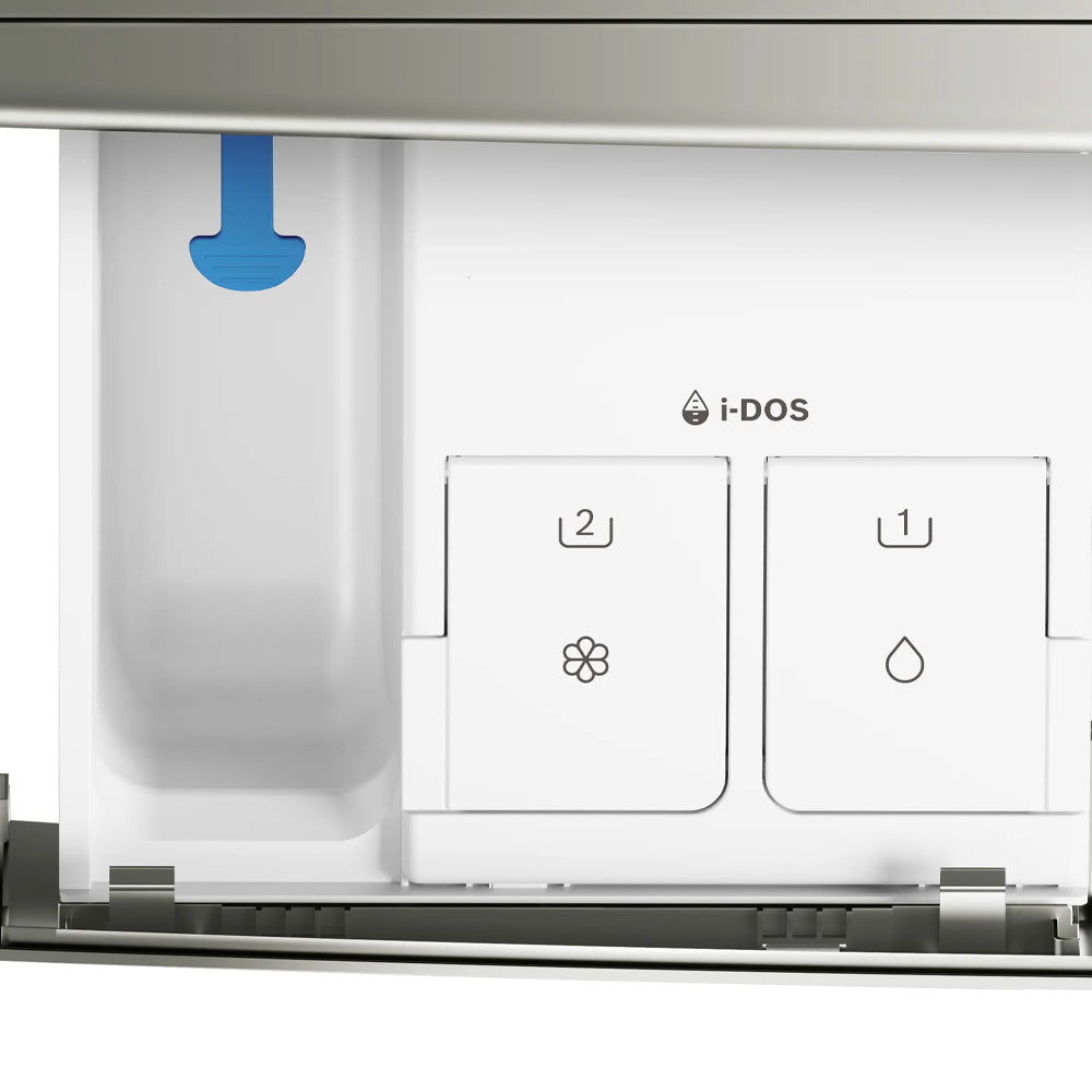اختيار الأزرار: بدء/إيقاف مؤقت، سرعة مثالية، جاهز للغسيل، مكواة سهلة، شطف إضافي، غسيل مسبق، مضاد للبقع، سرعة العصر، درجة حرارة المياه، i-DOS