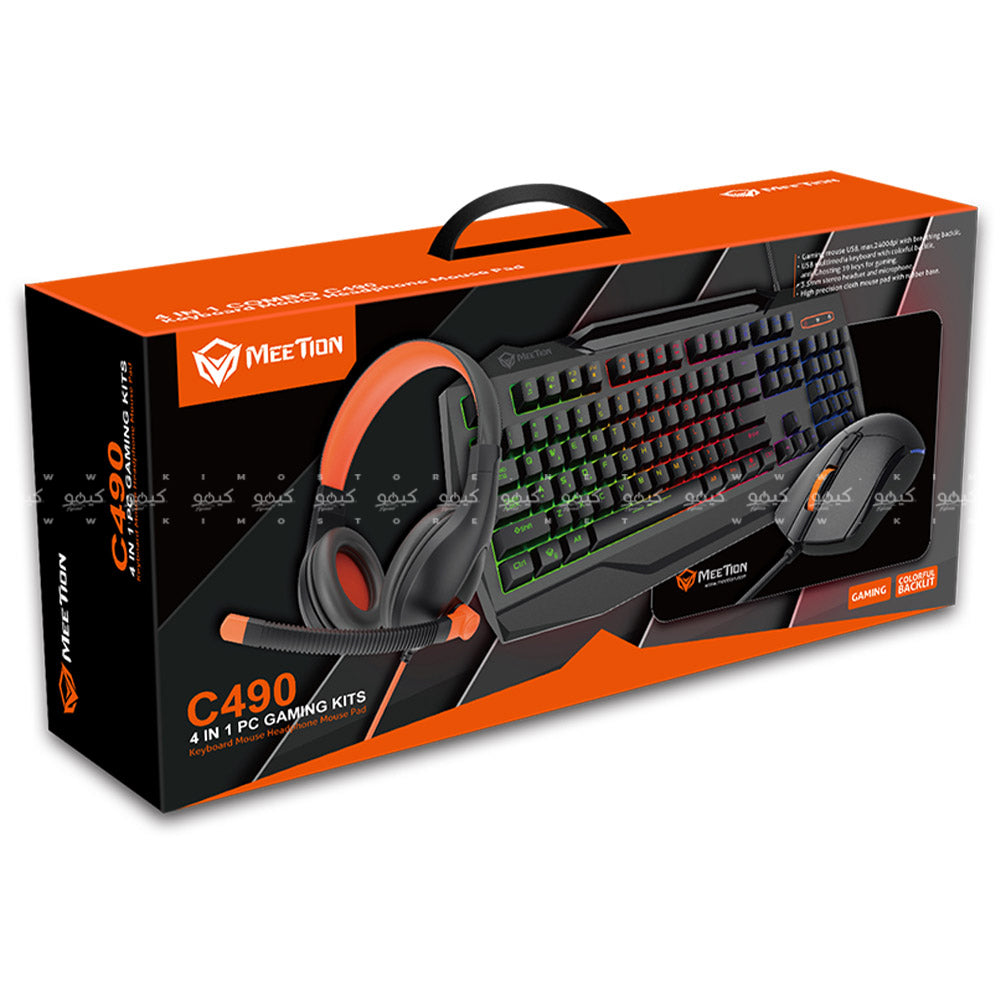 كيبورد + ماوس + ماوس باد + سماعة رأس ميشن سلكي رينبو جيمنج كومبو 4 في 1 إنجليزي وعربي C490