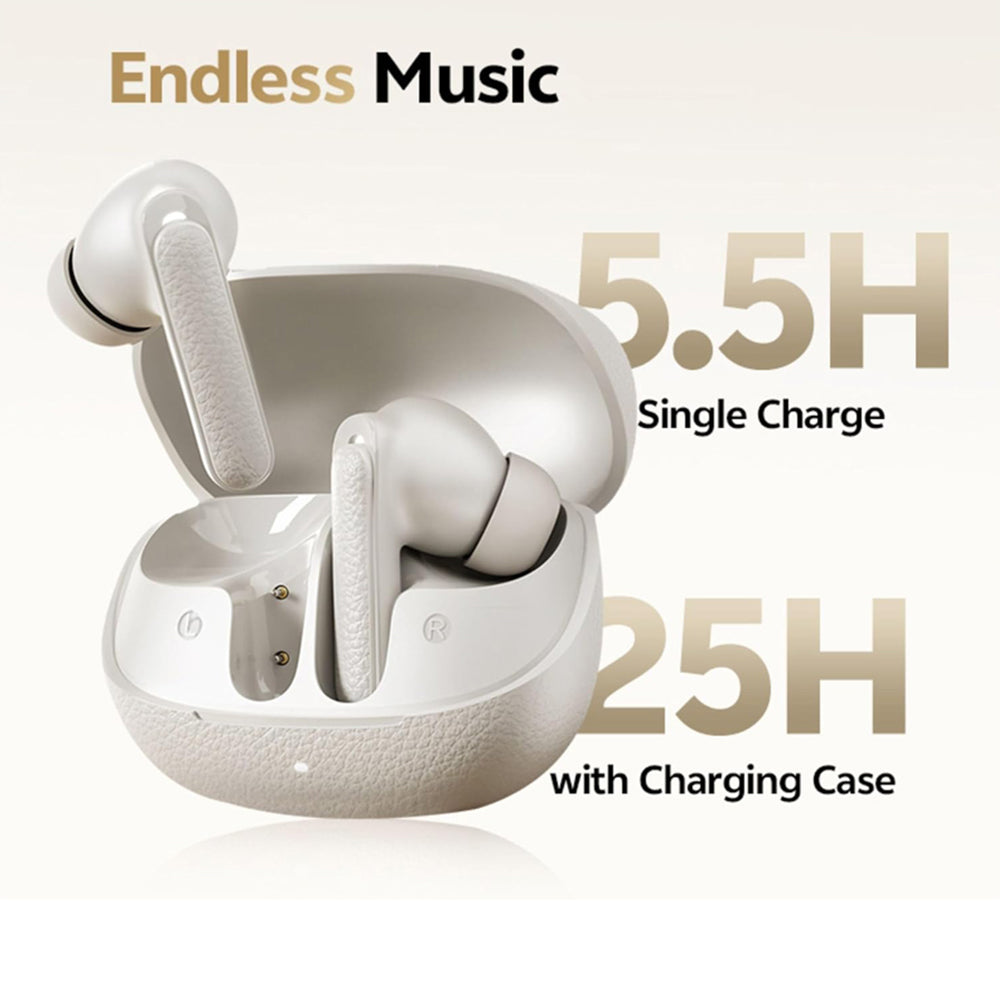 وقت التشغيل: إيقاف خاصية إلغاء الضوضاء: 5.5 ساعات (شحنة واحدة) - 25 ساعة (مع علبة الشحن) / تشغيل خاصية إلغاء الضوضاء: 4 ساعات (شحنة واحدة) - 18 ساعة (مع علبة الشحن)