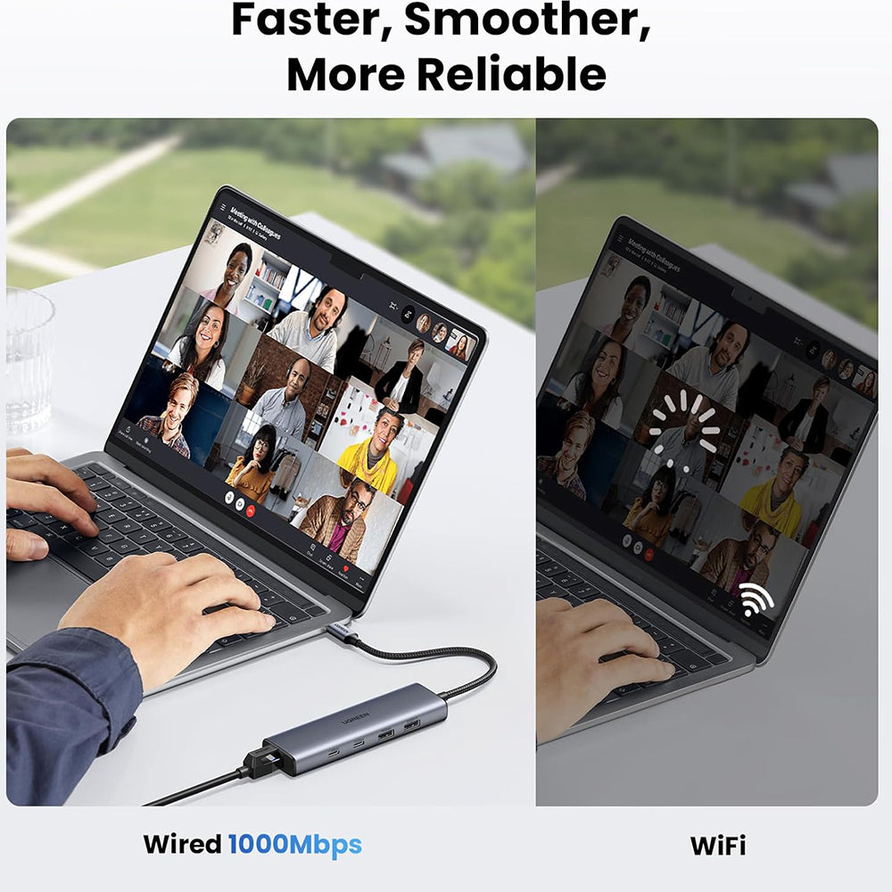 سرعة النقل: 10 جيجابت في الثانية (تايب سي، يو اس بي 3.2)، 480 ميجابت في الثانية (يو اس بي 2.0)، 10/100/1000 ميجابت في الثانية (RJ45)