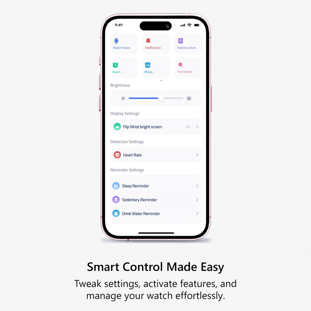 • Features: 100+ Sport Mode ,3D Watch Faces, HD Calling, Heart Rate Monitor, Sleep Tracker, Fitness &  Health Tracking, SOS, Smart Notifications, Weather, Camera, Music, Games, AI Chatting