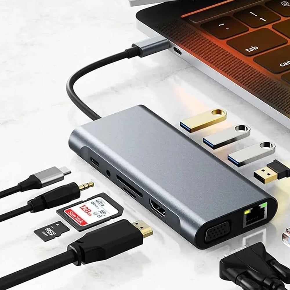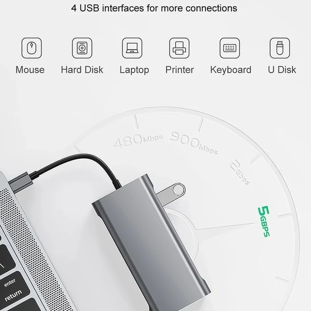 - To: 1x Type-C + 4x USB 3.0 + 1x Rj45 + 1x VGA +1x 3.5mm Audio + 1x HDMI + 1x TF Card + 1x SD Card